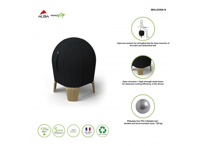 Der spielerische und ergonomische Hocker MHLOONA fördert eine aktive Körperhaltung und beugt gleichzeitig Muskel-Skelett-Erkrankungen vor. Seine Sitzfläche in Form eines Balls stärkt die Tiefenmuskulatur und fördert eine gute Ausrichtung des Rückens. Er ist leicht, stilvoll und mit einem Griff ausgestattet und passt sich jedem Arbeitsbereich an.
