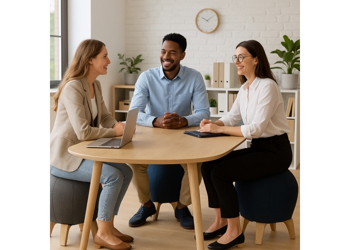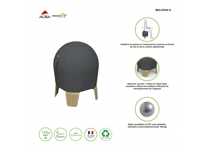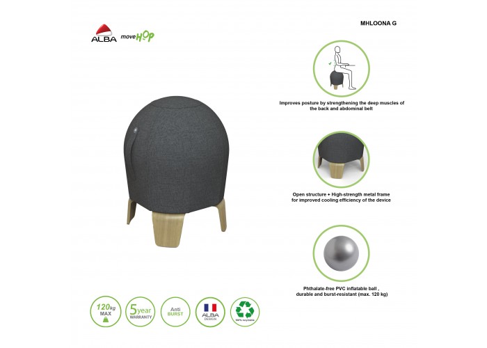 Der spielerische und ergonomische Hocker MHLOONA fördert eine aktive Körperhaltung und beugt gleichzeitig Muskel-Skelett-Erkrankungen vor. Seine Sitzfläche in Form eines Balls stärkt die Tiefenmuskulatur und fördert eine gute Ausrichtung des Rückens. Er ist leicht, stilvoll und mit einem Griff ausgestattet und passt sich jedem Arbeitsbereich an.