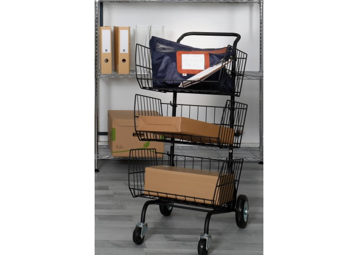 Der Postkorb wird Ihnen das Leben leichter machen. Stabil und leicht zu handhaben, sparen Sie Zeit bei der Verteilung Ihrer Post. Er besteht aus 3 Großraumkörben, 4 Rädern und einem Tragegriff.