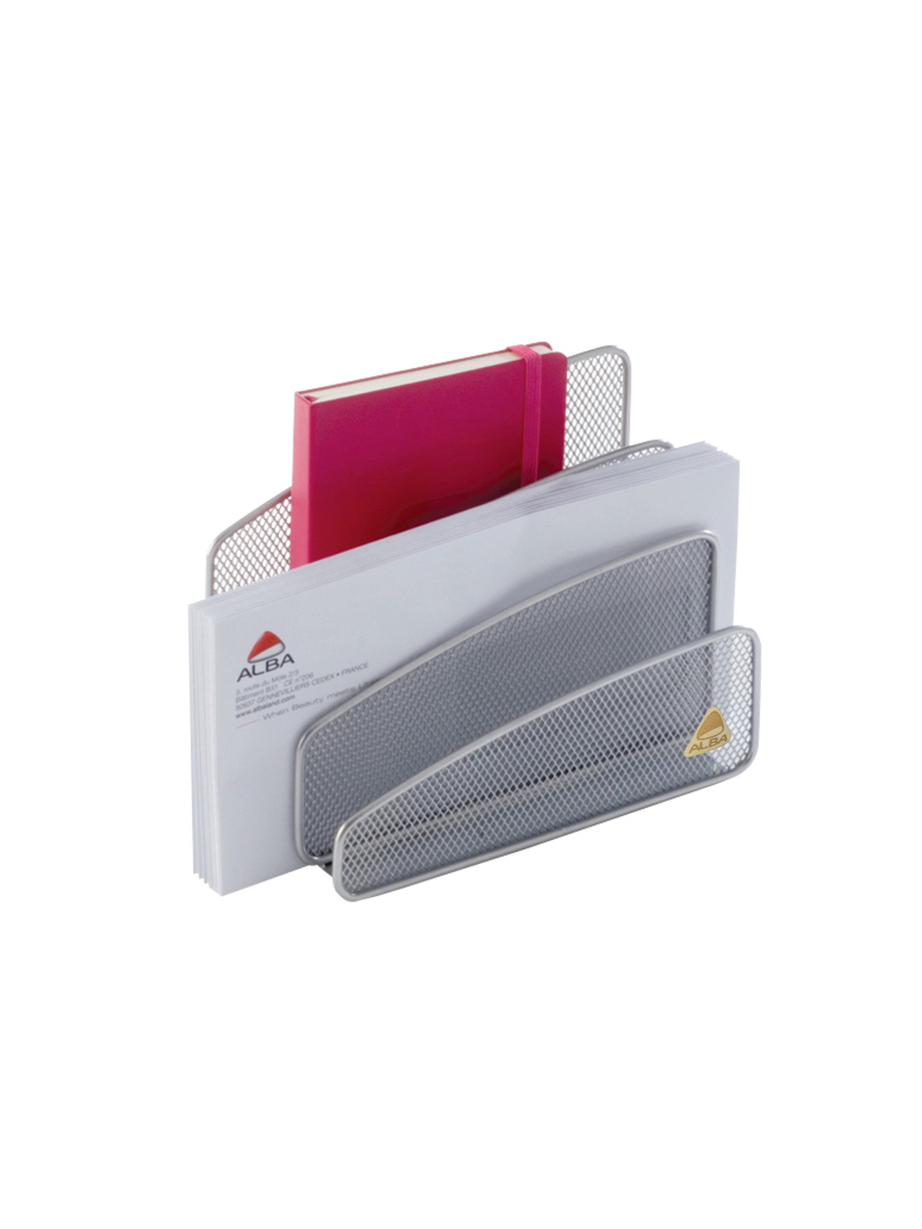 Design-Briefsortierer aus Metallgeflecht mit 3 gestuften Fächern zur einfachen Identifizierung von Dokumenten.