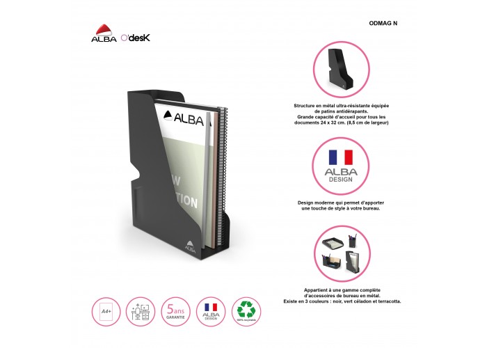 • The magazine rack is part of a complete range of metal desk accessories.