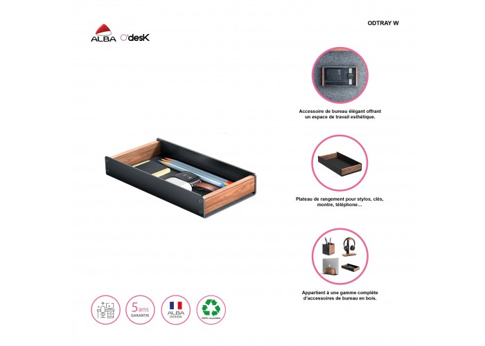 Bring a touch of natural elegance to your office with this wood and aluminium tray. Its refined design combines aesthetics and practicality, giving you an organised, harmonious workspace. Ideal for storing accessories such as pens, keys and watches, it optimises your space while making your day-to-day work more efficient.