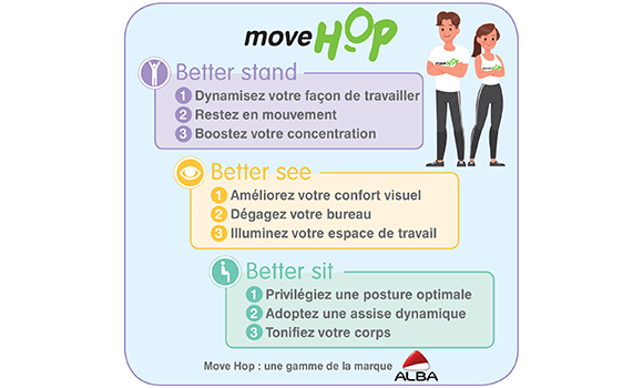 For this purpose, Alba offers: ergonomic desks, sit-to-stand desks, adjustable height desks, ergonomic stools, and articulated arms.