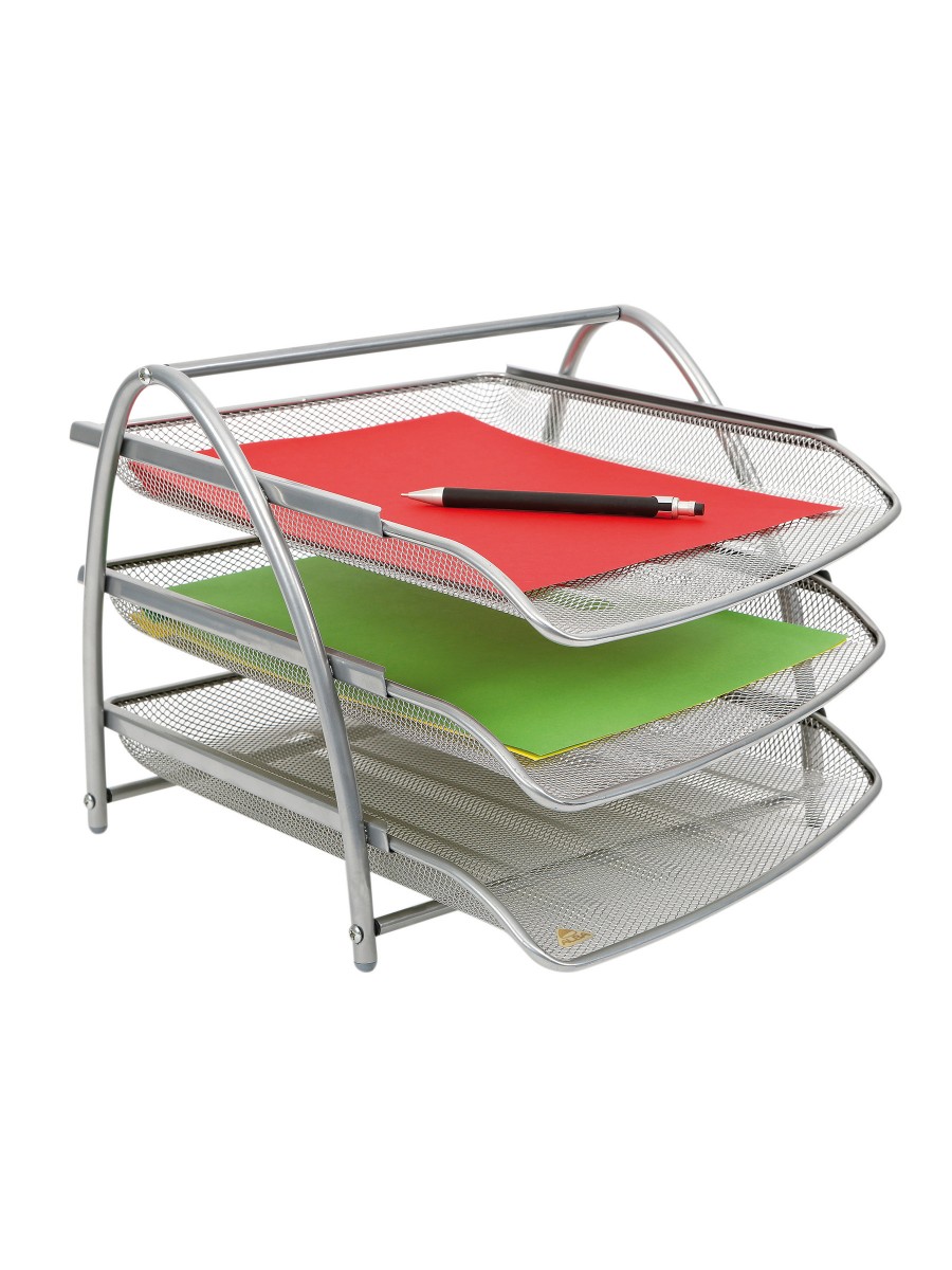 El juego de 3 cestas metálicas Mesh es elegante y funcional. Le ayudará a mejorar su organización. Consta de 3 cajones deslizantes para documentos de hasta 24 x 32 cm.