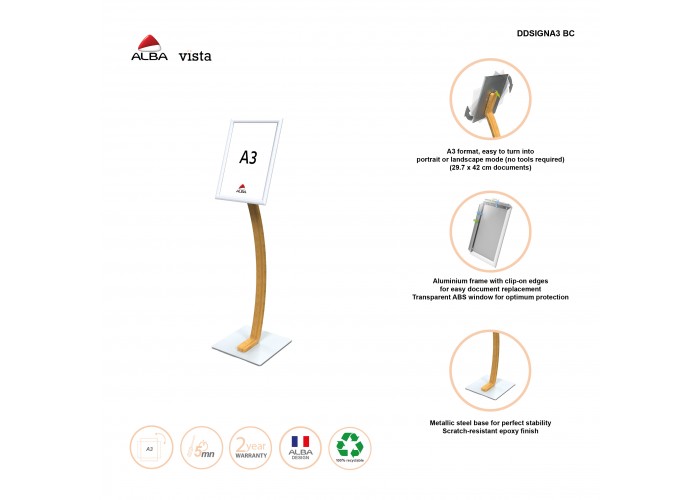 Maximice la visibilidad de sus documentos con nuestro expositor de señalización A3, perfecto para exponer sus documentos en recepciones, salas de espera, conferencias, etc. El práctico marco de aluminio con bordes enganchables le permite exponer sus documentos A3 en modo vertical u horizontal. Además, la ventana de ABS transparente protege sus documentos de forma óptima.
