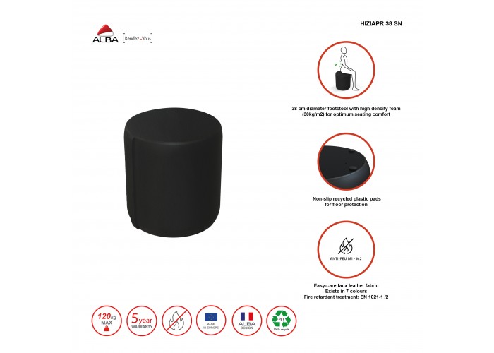 Aporte un toque de modernidad y comodidad a sus espacios profesionales con el puf redondo HIZIA. Con su generoso asiento y su forma acogedora, se integra tanto solo como complemento de una composición modular. Fácil de mover gracias a su asa integrada, es ideal para decorar zonas de recepción, espacios lounge o entornos de trabajo colaborativo. Disponible en dos acabados (poliéster y piel sintética) y en 13 colores para adaptarse a todos sus deseos.
