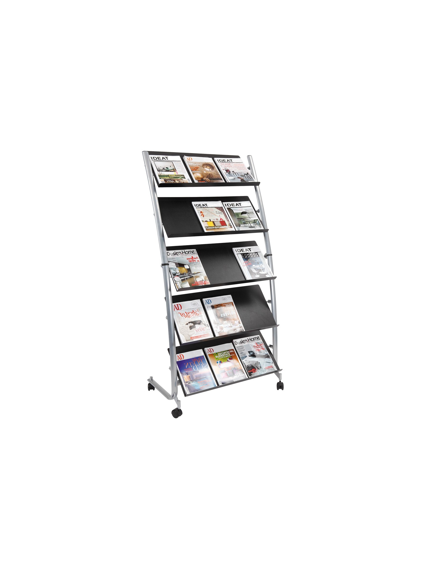 Para mantener sus revistas y folletos a la vista y al alcance de la mano, el gran expositor móvil es el accesorio ideal. Gracias a sus 5 estantes, podrá exponer hasta 15 documentos A4.