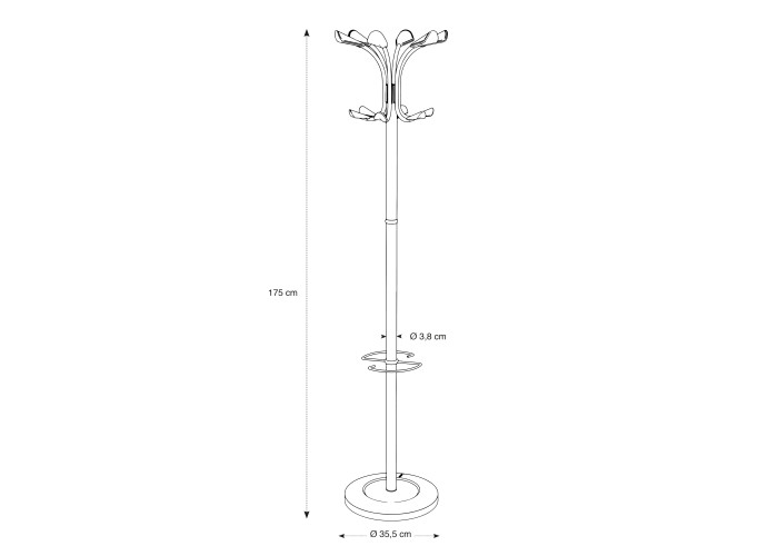 Propiedades Número de ganchos : 12 Capacidad del paragüero : 6 Base: Ponderado - 5kg |