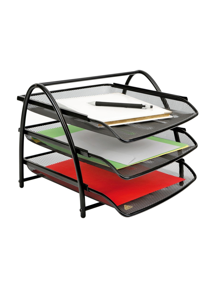 Il set di 3 cesti in metallo Mesh è elegante e funzionale. Vi aiuterà a migliorare la vostra organizzazione. Consiste in 3 cassetti scorrevoli per documenti fino a 24 x 32 cm.