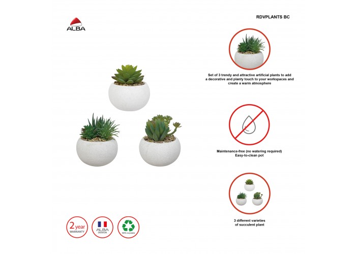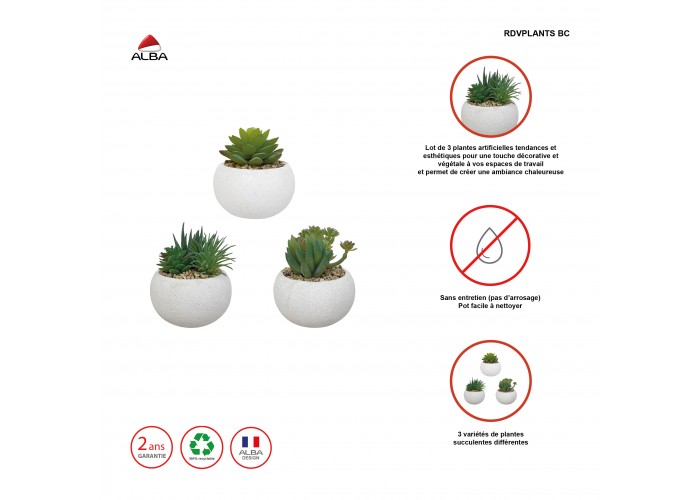 Aggiungete un tocco di freschezza ed eleganza ai vostri spazi con questo set di 3 piante artificiali di tendenza. Composto da piante grasse, questo trio decorativo crea un'atmosfera calda e naturale senza bisogno di manutenzione. Grazie ai vasi di carta ecologica e al design compatto (11 cm di altezza), queste piante sono perfette per ravvivare uffici, banconi, sale pausa o mense. Una scelta estetica e pratica per rinverdire i vostri spazi con stile.