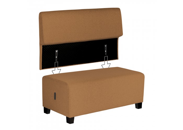 Compositions Telaio: legno Sedile: Schiuma (densità 30 kg/m3) Schienale : Schiuma poliuretanica (densità 26 kg/m3) Rivestimento : Tessuto 100% poliestere omologato OEKO TEX - FIRE RETARDANT |